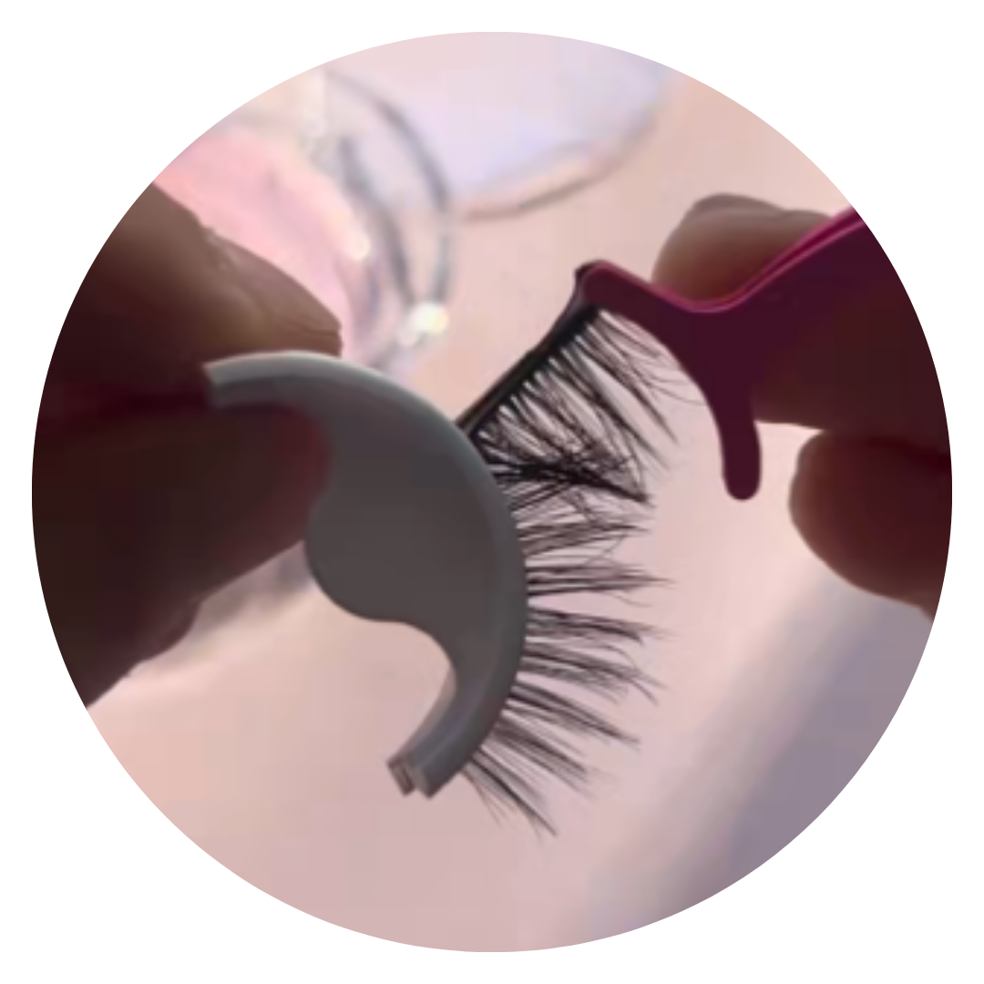 Start by popping the lash guard from the packaging, then carefully peel the lashes from one end to the other, avoiding the adhesive strip. Hold the lashes up to your natural lash line, measure, and trim if necessary. Once sized, press the lashes gently along your lash line for an instant, secure fit.